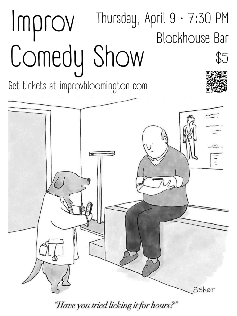 Join Improv Bloomington for a fast-paced, unscripted night of comedy. Everything is made up on the spot. No script, just creativity, quick thinking, and big laughs!
